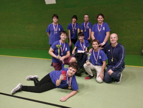 Středa byla dnem očekávání, jak to dopadne. Jeli jsme obhajovat úspěšné výsledky z loňska, ale věděli jsme, že rekonstrukce tělocvičny zapříčinila nemožnost trénovat netradiční hry v tělocvičně. Nervozita byla velká, první zápasy, ale dávaly naději, že to bude dobré. A bylo. Celý tým ve složení Pavel Balcar, Tobiáš Kosař, Jakub Výboch, Igor Zevel, Maty Hroch, Dominik Špelda + dva skvělí brankáři Kryštof Říha a Adélka Slavíková bojovali a zaslouženě si na krku odváží zlatou a stříbrnou medaili a dva poháry do budoucí školní vitríny. Gratulujeme!!!