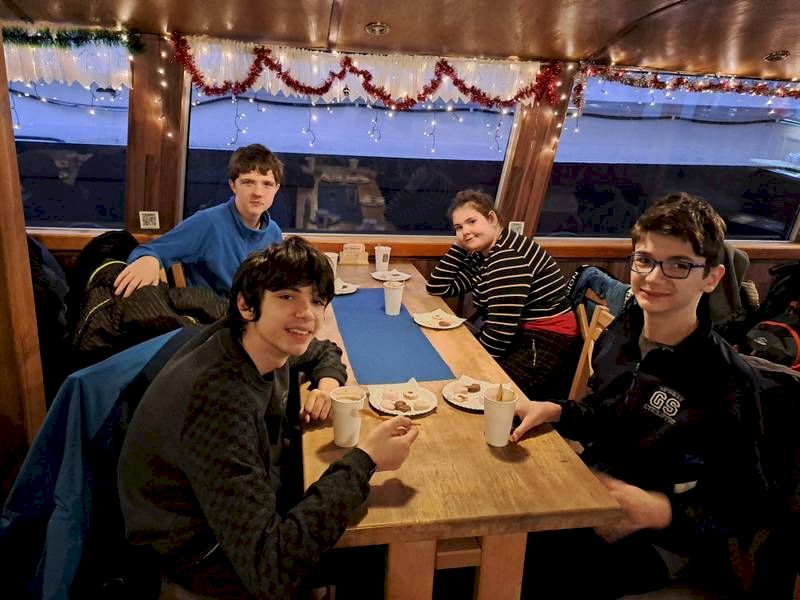 Je již mnoholetou tradicí, že se v době adventní vyráží v Noně na cestu do Prahy. Tentokrát byla na programu exkurze Pražského hradu. Prošli jsme nejznámější stavby rozsáhlého hradu a osmělili se k předání malého dárku pro pana prezidenta. Zakončení bylo ve Zlaté uličce, a pak už hezkou procházkou po náplavce k parníku. Tradiční plavba byla tentokrát ozvláštněna již soumrakem, rozscícenou Prahou a adventně naladěným parníkem. Nechybělo cukroví a horká čokoláda. A potom už nazpět do školy. Maminky tentokrát na svoje dětičky nečekaly, přespávalo se totiž ve škole. Tak zase za rok!