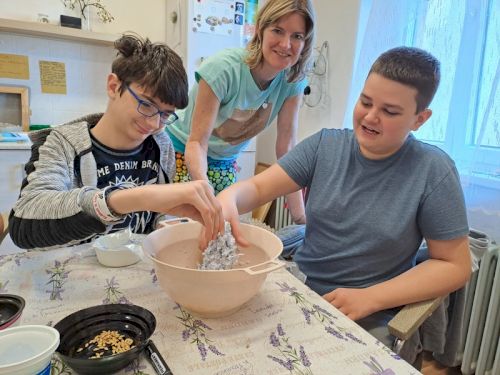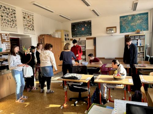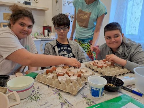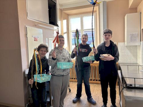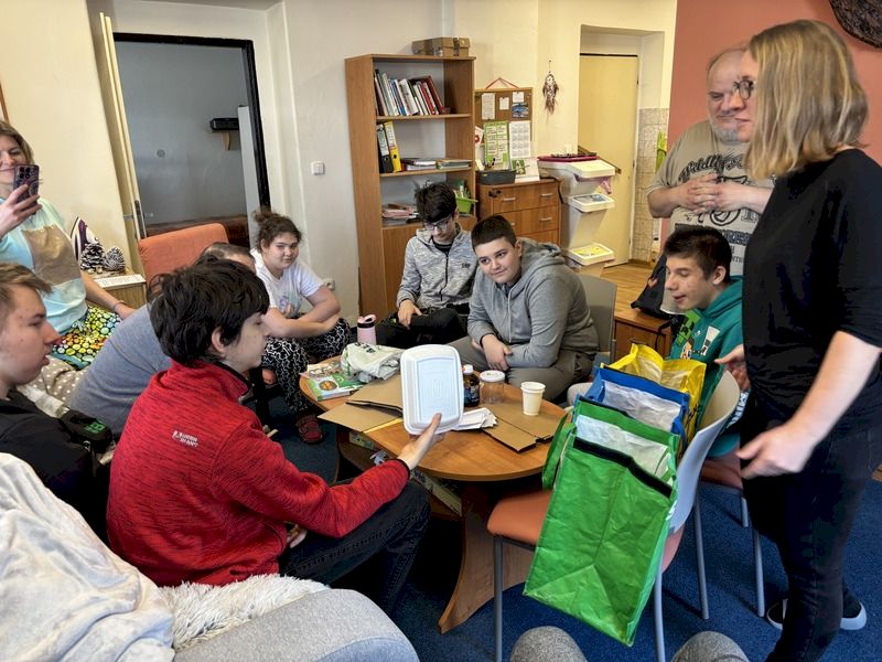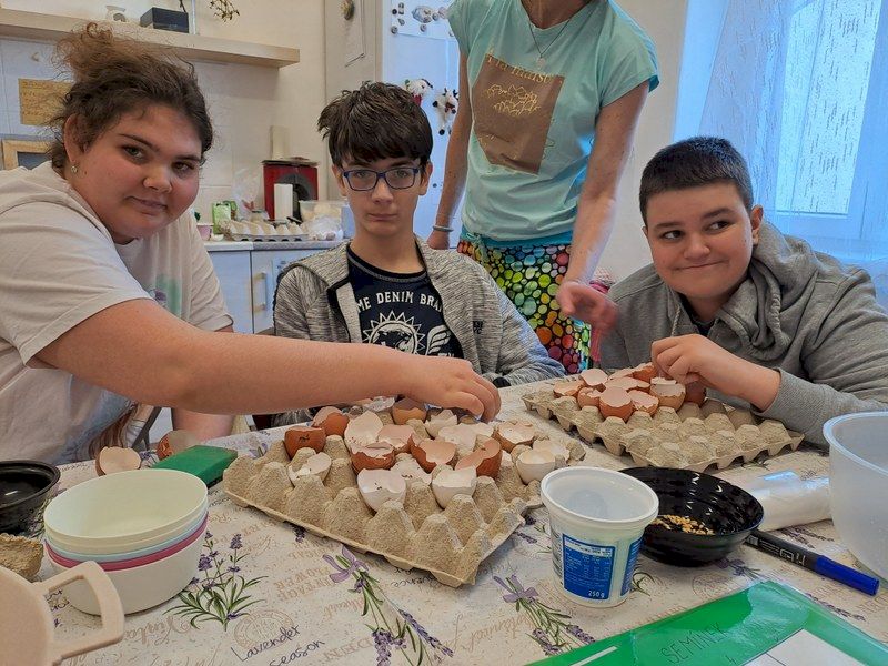 Nejstarší žáci ve škole se tradičně jedno dopoledne sešli s dospěláky v sociální rehabilitaci. Všechny aktivity tohoto dopoledne měly jednotné téma - ekologie. Nešlo ale jen o činnosti, důležité bylo setkání, povídání a přátelení. Vždyť někteří už brzy budou do sociální rehabilitace nebo stacionáře docházet.
