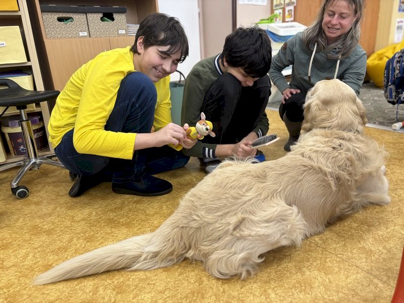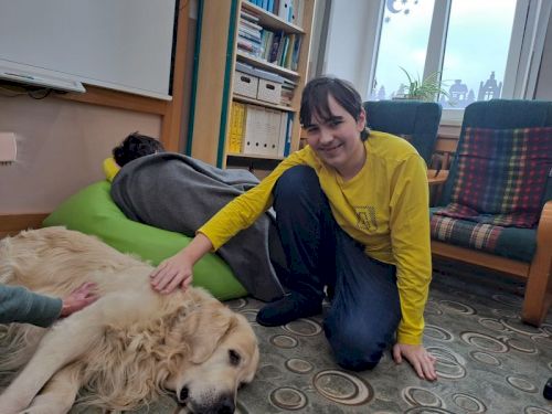 Zapsaný spolek "Tam, kde zvířata pomáhají" zajišťuje každý týden pravidelně v naší škole canisterapii. Terapeutka Máša provádí s pejskem Sande canisterapii na míru našim žákům. Děkujeme!
